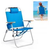 MOTORHOT Aluminum Backpack Beach Chair – Tall Beach Chairs for Adults, Portable with Adjustable Straps, 3-Position Reclining, Cup Holder, High Lightweight Beach Chairs for Beach - 2 PACK