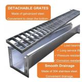 DURABLE CONSTRUCTION: The Driveway Channel Drain is constructed of heavy-duty 304 stainless steel and galvanized steel for corrosion resistance, preventing rust and withstanding de-icing salts and other harsh chemicals ALL-WEATHER PERFORMANCE: This yard trench drain system is built to withstand outdoor elements for years, maintain functionality in any climate conditions without cracking or breaking down over time Easy & Quick Installation: You can connect these outdoor trench drains together for extra length. Put construction adhesive (not included) on the cross-section of the drain and tighten with the supplied screws WIDE APPLICATION: The deck trench drain fits 3" drain pipes. Ideal for installing concrete floors in garages, driveways, parking lots, commercial buildings and other outdoor areas that require effective drainage solutions Metal drainage grate boasts excellent weather resistance. It won’t fade or age even when exposed to direct sunlight or humid environments for a long time. With a service life far exceeding plastic products, its robust anti-aging performance ensures worry-free use for years. Load Rating B Class: Suitable for Light Vehicle Traffic. Applicable Traffic/Vehicles: Passenger cars, SUVs, light vans, small trucks. Speed Limit: ≤5 km/h (safe for low-speed light-duty vehicle passage)