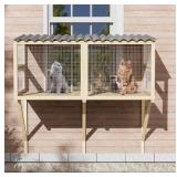 Safe Outdoor Experience: Our catio outdoor cat enclosure is made of soild fir wood and bite-friendly galvanized wire mesh,offers indoor cats a safe outdoor experience. Three triangular brackets with corner blocks provide excellent support Better Mental Health for Cats: In our 3-sided window catio, your indoor cats can breathe in the fresh air and bask in the warm sunlight while observing birds and other wildlife around them, satisfying their curiosity and hunting instincts Large Space Cat Box: With size: 41.3" x 24" x 23.42", our comfy cat perch for window sill offers a generous lounge area for your cats. Suitable for all most window which width is smaller than 38". Both wooden houses and brick walls can be installed Excellent Weather Resistant: Designed to adapt to various weather conditions, the window cat house uses a weatherproof roof, ensuring that your cats can enjoy outdoor activities whether it's the scorching summer or the chilly winter Connect Multiple Units: The cat window perch is not only suitable for standalone use but can also be connected with multiple. Regardless of how many cats you have at home, the flexible connection design caters to the needs of you