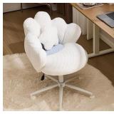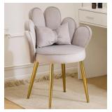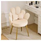 VINGLI Petal Makeup Vanity Chair with Back,Flower Cute Girls Desk Chair Comfy No Wheels,Modern Dining Chair,Small Accent Chair with Adustable Gold Legs&Bow Pillow for Home Office,Bedroom,Velvet,Beige