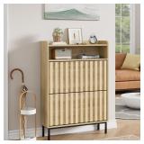 【Perfect Set Design】This round storage ottoman comes in a set of two, with the larger size measuring 14.76" x 14.76" x 17.32" and the smaller size 12.6" x 12.6" x 14.17". These two round storage ottomans can be neatly stacked together, offering a convenient space-saving solution. 【Ample Storage Space】Both the large and small ottomans offer generous storage capacity. You can place them in the entryway to store shoes, in the living room for blankets and throw pillows, in the children's room to organize toys, or in the dressing room for cosmetics, bags, and other essentials. 【Versatile Ottoman】This ottoman can serve as a footrest or shoe bench in the living room, or even as a vanity stool in the dressing room. The two reversible tops add the functionality of side tables, allowing you to place items such as coffee, books, and more on top. 【Comfortable and Durable】The ottoman's surface is made with thick, high-resilience foam, ensuring it retains its shape even after long-term use. The velvet fabric adds an extra layer of comfort to the touch. The frame is crafted from high-quality wood, ensuring remarkable sturdiness and a weight capacity of up to 300 lbs. For safety and floor protection, non-slip silicone pads are fitted on the bottom.