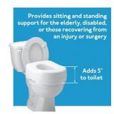 Riser. The raised toilet seat installs quickly and safely between your toilet bowl and its existing seat. It adds an additional 3.5 inches of height to make it easier to sit and stand.