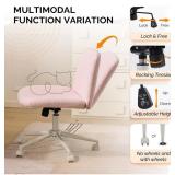 1. Ergonomic Petal Design: The accent chairs feature a stunning petal-shaped backrest that perfectly hugs your body’s natural curves, providing exceptional back support and ensuring comfort during prolonged use,such as makeup sessions. 2. Stylish Look & Bow Knot Cushion: This chic vanity chair with back comes with an adorable bow knot cushion that not only provides an extra layer of comfort for your back but also enhances the chair's aesthetic appeal.With its round seat design and stylish details, this makeup chair is not just functional; it’s a beautiful piece that enhances the decor of any beauty space. Besides, armless design fits easily in small spaces. 3. Premium Materials: This makeup chair upholstered in high-quality soft and luxurious velvet that adds a touch of sophistication while providing a comfortable seating experience for all your beauty routines. In addition, the desk chair no wheels with thick sponge padding for both the seat and backrest, ensuring a comfortable seating experience that keeps you comfortable all day long. 4. Sturdy Structure & Adjustable Feet: Elegant gold legs and solid wood frame panels provide stability and support, while adjustable foot pegs allow you to adjust for varying floor levels, making this cute desk chair a versatile addition to your home office or vanity station. 5. Easy Installation: Comes with clear instructions and all necessary tools included, allowing you to assemble your new velvet chair quickly and effortlessly.