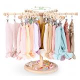 Essential Newborn Storage (Excluding Headbands And Bows) The POVETIRE hair accessories organizer (patent pending) is versatile enough to hold all baby items: headbands, hair bows, hair ties, bibs, burp wipes, pacifier clips, baby hats, bracelets, glasses, and other baby essentials! Easy Rotation Function : Rotate freely to the hanger with hair accessories you want to pick up, we use the best link rotation process, rotating the chassis does not move. The headband organizer rack is made of fine log wood, which is polished smooth at any Angle and will not harm the baby hair accessories. Specially Decorated for Your Kindergarten : Our headband holder is designed in neutral wood/white to look good in any room. It makes a lovely decoration on your changing table, on the top of your dresser, or on the inside of your cupboard.It's a must-have item for a dresser. Multifunctional Storage Shelf:Bow holder with six different Angle storage racks, you can easily store all yo ur baby hair accessories and baby items, use them as bib storage, store all your baby's hats or put them next to your bed, making it easier to find things when dressing up your baby's outfit. Thoughtful Baby Bath Idea:The POVETIRE baby headband organizer is a practical and beautiful present that is a must for newborns and the best baby registration present for new parents that should be in every baby registration. This is a great baby present!