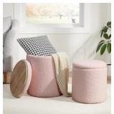 Royal Windsor Boucle Round Ottoman with Storage Set of 2,Small Foot Stool Ottoman for Living Room, Small Coffee Table,Vanity Stool with Storage for Bedroom, Pink