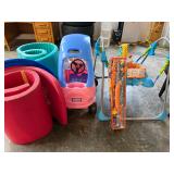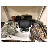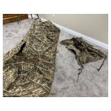 Basement-Ignator layout blind for hunting, dog hunting blind, western saddle 14 1/2” prestige seat size, English saddle, assorted hunting clothing, large assortment of decoy ducks (floating and on stands), Rally pack motorcycle luggage, Coleman Montana 12x7 tent, assorted barware, Play Station 2 with controller and memory cards, assorted Play Station and gameboy games, UK 1996 NCAA champion golf bag (new), 33” storm doors, assorted door screens, vacuums, steam cleaner, treadmill, vast assortment of children’s clothing, books, over the door basketball hoop, in motion compact strider and other nice items.