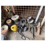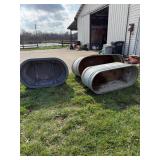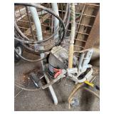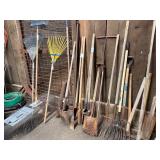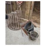 Barn-Livestock gate panels, hay feeders, galvanized water troughs, polymer water troughs, metal fence posts, welder and accessories, steps ladders, assorted tack, assorted tools, fire pit, pressure washer, lawn aerator, wall mounted hay feeders, assorted yard tools, animal traps and other livestock/barn items.