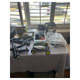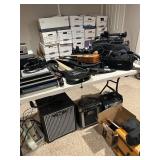 Gaming systems, video games, controllers, EMAC original, Dell laptops, cameras, Sony HDV, records, VHS, 3D printer parts, DX7 2 keyboard with case, DVD surround sound theatre kits, music gear, amps, toys, TV's, chess set, Christmas, books, kitware, Gibson white set of dishes, men's clothing, hats, fishing and boat gear, tool chest, tools, NIB fans, AC's, bikes, Everlast bags, skies, 6 foot skateboard rail, inverter table, power washer, hose holders, set of 4 teak chairs, outdoor table with 6 chairs, lounges, side chairs, Weber grill, firepit, birdbath, lots of garage items, farm table & chairs, grandfather clock, complete bedroom set with armoire, cart, leather recliner, shelf, marble top counter height table with 2 stools, wall art, decorative accent pieces & lots more! |
