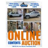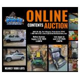 Online Auction begins 4/16/2026 5:00PM Lots begin to end 4/22/2026 7:00PM Removal of contents from property is 4/24/2026 9AM to 3PM You are responsible for removing, loading, and hauling your items. Bid accordingly. Payment can be made in advance online or you can pay on site with cash, check, card. All Sales are final. All property is offered As-Is condition. 15% Buyers premium. 2015 Jeep Grand Cherokee, 1982 Volkswagen Rabbit, John Deere 755 and 757 Zero Turn. Automatic wheelchairs. Household furniture, Office Furniture, Recliners, Chairs, Bedroom Furniture, Bedroom Sets. Kitchen Appliances, Utensils, Equipment. File Cabinets, Storage, Shelving. Cleaning and household supplies. Wall Art/Prints, Lamps, Knick Knacks, Collectibles, Books. Vintage games, toys, movies. Ceramics and Glassware. Lawn mower equipment and attachments, lumber, piping, hand tools, power tools, ladders. Outdoor furniture. Nearly 1000 lots in this online contents auction. Check out the catalog for much more. 139 144 145 146 219 225 228 249 264 267 271 275 278 281 283 299 326 334 341 343 344 345 346 347 354 355 359 371 373 383 407 440 489 490 493 494 495 498 502 503 504 506 515 516 520 524 526 527 528 529 530 536 539 542 543 550 558 564 566 569 578 581 582 584 586 588 589 592 593 594 596 598 599 600 601 602 603 604 606 610 611 614 615 616 618 625 626 629 637 638 640 641 642 643 649 657 661 663 666 669 670 676 677 678 680 682 683 691 738 754 756 807 808 833 834 837 846 860 885 914 919 967 984 997 1000 |