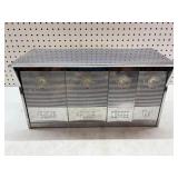 Hall table with 3 drawers Honda GCV 160 self propelled mower round outdoor fire pit table Drop leaf table and chairs vintage Mid-Century Modern biomorphic coffee table traditional American pie safe cabinet Blue la-z- boy recliner vintage metal lighted tension pole shelving unit Earthway Seeder and yard tools Storage cabinet with drawers Iron entry hall tree with coat rack rolling kitchen cabinet cart 4 foldable shelves 3 shelving units shelving unit Vintage Krestline Speco chrome kitchen canister cabinet Vintage collectible uncle Sam’s coin bank Solid brass duck Interlude decorative hanging station clock United States Marine Corps 420A stainless steel knife with sheath three plant stands 13” musical Christmas clock Deluxe Game Set Wall hanging clocks Garrett Ace 250 metal detector 2 wood and metal shelves Pier 1 white nightstand Solid oak plant stand Hall table small end tables or plant stands Vintage 1950 Singer featherweight sewing machine Lot of various vinyl records and 45’s Mainstays 3 Shelf bookcase new in box Metal toolbox with various tools Various wrenches Various ratchets, sockets, and extensions ratchets and drivers Various pipe wrench and hand tools Metal toolbox and other various tools Drill bits, screwdrivers, and saw blades Kwikset door knob, grip trax and more Vintage planer, drill, and folding measuring stick 4 tool boxes with tools and hardware Lot of various fasteners and hardware locks, work gloves, ratchet strap, and more Caulking guns, flashlights, soldering gun miscellaneous items Tool box with various tools Lot of various hand tools Black diamond screwdriver set 8 in 1 portable power source with jumper cables Bessey GK60 Clamps metal toolbox with various leather working tools Small Metal 4 drawer storage bin hand tire pump, led lamp, and foldable stool Gardening tools Painting supplies Banner 3 Ton jack stands Vulcan 4 inch scrapper Gardening supplies Sander, circular saw, and reciprocating saw Plastic storage towers Shag bag and golf balls Exotics golf bag and club set Golf bag with golf clubs Ridgid shop vac with attachments Homemade quilt Bavaria Schumann Duck, Goose, Pheasant, and Quail mugs Galileo thermometer and borometer steam punk door knocker and rustic decor Collins Canvas bucket handbags vintage Mortiz zdekauer porcelain covered tureen bowl painted porcelain candlesticks and jewelry or trinket box Pier one imports porcelain measuring cups, and various porcelain mortar and pestles two redwing pottery cornucopia vases Lead Crystal vases made in Poland with hand blown glass floaters, and glass decorative gems Glass and lead crystal decorative vases and canister vintage gooseneck mid-century modern desk lamp Glass bird and fish figure Japanese style porcelain tea pot and sushi trays porcelain serving trays, mini loaf pans, Sweetener packet holders, and individual baking dishes vintage lefton porcelain China tea set with order of eastern star logo vintage Pyrex yellow and Lime green baking dishes large lot of various glass serving dishes and bowls Glass juicer, butter trays with covers, and serving trays large lot of corning ware porcelain and clear glass pitchers, and various porcelain dipping bowls various measuring cups pyrex, anchor hocking, and unmarked glass baking dishes and mixing bowls cedar storage box, wood filing storage box, and knickknack shelf sharper image super wave digital oven porcelain tea pot and glasses made in Japan, and mug and saucer made in Indonesia Tom Clark chipmunk figures and Perko Bird figure pyrex, anchor hocking, and Rubbermaid glass baking and food storage items lot of various serving bowls and colanders vintage glass divided refrigerator dish, Pyrex glass baking pans, and other kitchen items organic roasting pan, various cake molds, and more Cuisinart and calphalon cookware Hamilton Beach mixer, and two small slow cookers Nesco food dehydrator and jerky maker ninja food processor, Capresso blade grinder, and various food cutters candles and decor pitchers, teapot, and vase Franciscan porcelain candle stand or pedestal, and various canisters and vases Aqua blue glass vase, blue glass brandy sniffer, And Dr. Fischs bitters bottle terra-cotta items Olive and relish serving tray, teapot and cup, Coca-Cola glass, and green and blue stem wear Wagner wear cast-iron skillet various cookie cuters Glass and metal terrarium, glass trinket boxes, and lighted stained glass decor porcelain decorative serving bowls, mug, and small pitchers various porcelain items various silver plated serving platters, napkin holders, and more vintage glass saucers, and various porcelain and ceramic coasters and trays porcelain bud vases and decor, brass Hanukkah candle holder, and candles porcelain carp and Japanese themed chopstick holders, incense burner, and various animal decor sterling silver pedestal sugar bowl, creamer, and glass sugar bowl with sterling silver lid solid brass duck head book end vintage pin back buttons – guys potato chips promotional items various advertising belt buckles The Winchester book signed by author vintage beer and alcohol related pins, keychains, and pin back advertising various lapel pins vintage buttons, hat pin and brooches Jade and other various rocks vintage D-Day era World War II life magazines, and 1960s life magazines inside the dream the Jimmy velvet story book and signed CD, and Elvis 50th anniversary record various glass paper weights collection pitchers and canister The Bradford Editions Frosty feathered friends illuminated ornament collection vintage ink wells, and collectible writing instruments vintage glass inkwell and desk organizers various collectible animal figures Vintage native Alaskan hand carved walrus tusk pen holder vintage Norwood custard glass tumblers vaseline glass hobnail vase and uranium glass creamer Glass ruffled edge vase and bowl vintage Indiana glass lidded candy dish and platter Worx 18” Electric Chain Saw Mini Fridge Large metal storage cabinet 3 drawer storage end tab