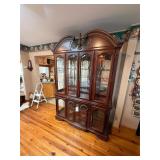 Cherry China cabinet, table and 6 chairs, buffet, by Kincaid (sold separately, oak step ladder that coverts to an ironing board, sofa, chairs, Queen Anne period sofa & side chair, tables, king bed frame & mattress & box spring, Waterfall bedroom suit, benches, oak bow front China cabinet, Grandfather clock, several wind up clocks, Howard Miller clock,