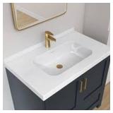 NTQ 36 in. W x 22 in. D Solid Surface White Vanity Top Rectangular Single Sink Bathroom Vanity Top in Glossy White