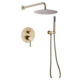 BWE 1-Handle 2-Spray Rain Shower Faucet and Hand Shower Combo Kit in Brushed Gold (Valve Included)