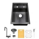 Stainless steel gunmetal black bar sink combines fashion with function to create a contemporary look for any kitchen or bar. It has included whole set of accessories including gunmetal folding faucet, cutting board, bottom grid, and soap dispenser. Handcrafted sink from high quality, type 304 18-gauge stainless steel and sound insulated with noise absorbing pads. For undermount easy installation and hardware are provided. Experience the enduring quality of Glacier Bay and bring your design ideas to life.