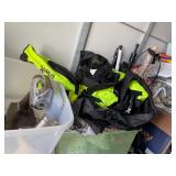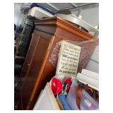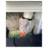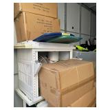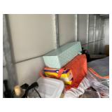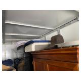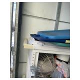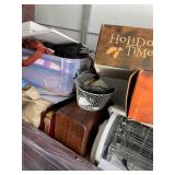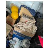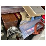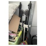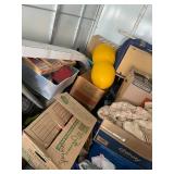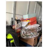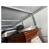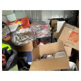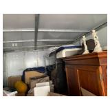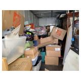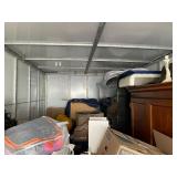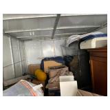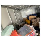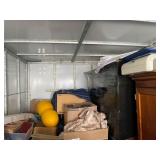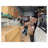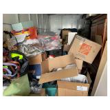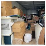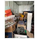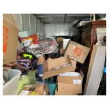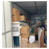 Contents of an 8' x 20' storage pod being sold by the contents owner. Items include furniture and storage pieces such as two folding corner pine shelving units, a white IKEA-style two-shelf unit, a wooden computer cabinet, a wooden desk, a stool, a small jewelry box, and brass cabinet handles. Appliances and home items consist of a microwave, air conditioner, dehumidifier, vacuum cleaner, stove or grill top, rotisserie, iron with holder, a TV swing-arm wall mount, and an adjustable closet rod. Kitchen and dining items include copper baking tins, kitchen cutlery, knives, plates, wine tote bags, and candles, including Halloween-themed ones. Clothing and accessories feature a reflective motorcycle jacket with an inner liner, leather purses, assorted purses, and various clothing items. Items for kids and pets include Barbies and Barbie playsets, a doll, a dog thunder coat, a gravity pet waterer, additional pet supplies, and baby gates. Tools and equipment include an electric cordless circular saw, radio equipment (an M-90 board with power box), lighting tripods, and paint and caulking supplies, and more. The functionality of electric and electronic items is unknown. Authenticity is not checked nor guaranteed for any items. Items are located in Schenectady, NY. |