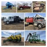 2008 Utility Brand Van Trailer, 53’ Long, Sliding Tandem, Swing Door, Excellent Floor, 445/50/22.5 Michelin Tires (2 are New), Aluminum Rims Dalton Ag Mobility Model 800 Row Crop Fertilizer Spreader, Raven Controlled 8 Ton Box, 380/90R46 Tires, 50'-60' Spread, Hydraulic Double Spinners, Toll Tarp, SN: 18200352, *UNIT HAS NEVER BEEN USED (More Photos Coming) 2023 - 2 Box HitchDoc HSC2000 Seed Tender with Talc Applicator with Remote for Fold Auger and Starting/Stopping Auger, Honda GX240 Engine with Electric Start, Tandem Axle, 15" Tires, SN: HSC7924 Redball Model 570 Pull Type Sprayer, 1,200 Gallon Poly Tank, 80' Hydraulic Booms, Wash Tank, Mix Tank, 320/90R46 Tires, 3 Way Nozzles, with Montiors. *UNIT HAS NEVER BEEN USED, IT IS APPROX 2006 MODEL AND BEEN STORED IN A SHED SINCE NEW, BOOM UPDATES HAVE BEEN DONE. (More Photos Coming) Terra Gator Model 1664T Fertilizer Applicator, 40,080 Miles, 3,572 Hours, 66x42-25 Rears, 42x31-20 Fronts CAT Engine, SN: T6200 2003 Jeep Wrangler, 2 Door, 4x4, Vinyl Top 1948 Ford Tractor, 8N, Cleaned Carb, New Water Separator John Deere Model 2410 – 32’ Chisel Plow, 32 Shanks, 3 Bar Harrow, Fold Up Wings, 11L15 Tires, SN: 010282 1995 Ford Super Duty Dually with Utility Service Box, 231,421 Miles, 7.3L Powerstroke, Automatic Transmission, 235/85R16 Fronts and Rears John Deere 7200 Planter, 8 Row 30”, Markers and Computer Trak 200 Monitor Crust Buster 20’ Wide 3pt Mounted Drill 1991 Freightliner Semi, 872,336 Miles, 3176 CAT, 9 Speed Transmission, 275/85R22.5 Fronts, 11R22.5 Rears, Adjustable 5th Wheel, New Clutch Less Than 25,000 Miles Ago, Geared Low for Heavy Hauling, Likes a Shot of Either to Start Better 2003 RAM 2500 Pickup, 4x4, 4 Door Long Box, 164,077 Miles, 5.7L Gas, Automatic Transmission, 265/70R17 Tires, Engine Was Replaced at 130,000 Miles with Another one with Approx the Same Miles, Pickup Does Come with a Salvage Title but was Professionally Repaired 2010 Ford F-150 Platinum Pickup 4x4, Crew Cab, V8 Engine, Automatic Transmission, 187,720 Miles, Engine was replaced at 150,000 Miles with a Crate Engine 1994 International 9200 Semi Tractor, Sliding 5th Wheel, 10 Speed Cummins Transmission, Shows 123,483 Miles, 11R22.5 Fronts, 295/75R22.5 Rears, VIN: 775452 2012 NoMad Joey Model 377 Camper, 37’ Long, AC, Furnace, 2 Slide Outs, Bathroom, Fridge, Stove, Microwave, Radio, Awning John Deere 12’ Pull Type Scraper, Hydraulic Lift, SN: 940-01 Melroe 420 Multi Weeder, 30’ Wide, There has been some different tire and wheel bearings recently installed Case IH 46’ Field Cultivator, Model: TMII-38-46, 2 Bar Harrow, Rolling Baskets, Fold up Wings, Walking Tandems, SN: JFH0038783 2024 Cub Cadet Ultima ZT2 Zero Turn Lawn Mower, 60” Deck, 180 Hours, Kawasaki FR730V Engine, Works as it Should Per Seller 2005 Winnebago Voyage Motorhome, 8.1L Chevy Gas, 38’, 72” Rear Slideout, 13’10” Mid Slideout, 10’8” Right Hand Slideout, Onan Marquis Gold 5500 Generator, Power Sofa, Swivel Recliner, (2) Front Leather Captains Chairs, Dinette, Backup Camera, (2) Roof A/C Units, 18’ Awning, Hyd Leveling, 32” TV, 3 Burner Stove, Sink, Fridge/Freezer, Shower, Toilet, Queen Bed, 24” Rear Roku TV, Power Steps, 235/80R22.5 Tires, 92071 Miles, title 1985 Int 9370 Eagle Tandem Axle Grain Truck, 855 Cummins, 15 Speed, Jake Brake, Spring Ride, LoPro 22.5 on Steel Budd Rears, 11R24.5 Fronts on Aluminum Budd, Air Ride Seat, Dual Aluminum Fuel Tanks, LED Headlights, 20’ Steel Box, 96” Wide, 62” Sides, 3pc Endgate, with (3) Grain Gates, Roll Tarp, Crysteel StingRay Scissor Hoist, 030599 Miles Showing, Title, VIN2HSFBJWR9FCA14281, *recent new fan hub, water pump, air dryer, and more, see work order in pics, just about $10,000 in recent repairs, recent new tarp 2013 RAM 2500 Heavy Duty SLT 4x4 Pickup, 4 Door, Cummins 6.7L Diesel, Cloth, Auto Trans, JVC Bluetooth Stereo, Auxiliary Lighting, Power Running Boards, Trailering Mirrors, LT285/70R17 Tires on Aluminum Rims, Tow Hooks, Fender Flares, Tonneau Cover, Spray In Bed Liner, Toolbox, 5th Wheel Ball, Receiver Hitch, Bumper Step, WeatherTech Floor Mats, Hood Guard, Rhino Liner on Lower Body and Bumper Coating, 165456 Miles, * miles will increase, title, VIN- 3C6UR5DL6G569470 King Kutter II Tiller, 6’, Mounted, 540 PTO Melroe 204 16’ Press Drill, 6” Spacing, Markers, Always Shedded Willmar 600 Narrow Track Fertilizer Spreader, All Tires Have Been Tubed, Tarp is Ripped but Unit Comes with a Brand New Tarp (Not Installed). This Item is Located in South Dakota, Therefore South Dakota Sales Tax Rules Apply. A Sales Tax Exemption Form DOES NOT Remove the Sales Tax. South Dakota Sales Tax of 4.2% Will be Charged on This Item. For More Information on South Dakota Sales Tax, Please Click on the ‘SD Farmers Use Tax’ in the Documents Tab. John Deere 560M Round Baler, 21.5L-16.1SL Tires, Net Wrap, Wind Guard, 1-3/4” 1000 CV PTO, Gauge Wheels, Monitor, 10132 Bales, Owners Manual, SN- 1E0560MDCMM476541 HARDI Navigator 1000 Sprayer, 1000 Gal Poly Tank, 13.6-38 Singles, Adj Axles, PTO Pump, 1-3/8” PTO, 66’ Boom Triple Nozzle Bodies, Hand Rinse, 3 Section, 2” Fill, Control Boxes Melroe 452 Multiweeder, 40’, 3 Rank, 4” Shovels Flexicoil System 82 Drag, 60’ Minneapolis Moline 10’ End Wheel Grain Drill, 6” Spacing, Drag Chains, Clutch Lift Ford New Holland 655E Tractor Extendahoe Backhoe, OROPS, 4x4, 88” Bucket, with Bolt-On Cutting Edge, Self Leveling, Top Pintle Hook, 18” Hoe Bucket, with Teeth, Pintle Hook, Diff Lock, 12-16.5 Fronts, 19.5L-24 Rears, 6317 Hours Showing, SN- 031024110, Owners Manual Melroe 420 Multiweeder, 30’, 4 Rank, 2-3/4” Shovels Top Air TA1600 Pull Type Sprayer, 90’ Boom, 380/90R46 Singles, with Adjustable Suspension Axle, 5 Section Boom, Triple Nozzle Bodies, Boom Rinse, Hand Rinse, Raven SCS450 Controller, Boom Controller, Foamer, Hyd Pump , 2” Fill, Speed Puck, Radar Cable for CaseIH, Owners Manual 1988 Dodge D-150 Pickup, 2WD, 318 V8, Auto Trans, 8’ Box, Re