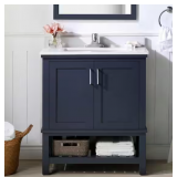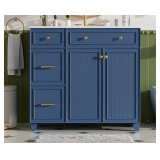 (61) Dexmalle 36-in Blue Freestanding Single Sink Bathroom Vanity with White Ceramic Top
