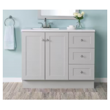 )27) Glacier Bay Bannister 43 in. Single Sink Pearl Gray Bath Vanity with Granite-Look Colorpoint White Cultured Marble Top (Assembled)