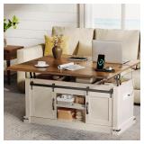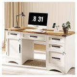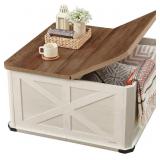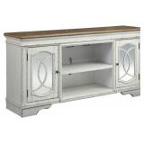 (125) Signature Design by Ashley Realyn Farmhouse TV Stand with Fireplace Option Fits TVs up to 72", 2 Cabinet Doors and Adjustable Storage Shelf, White & Rustic Brown