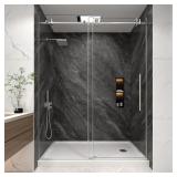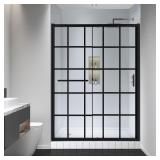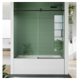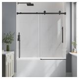 (114) Garvee Frameless Sliding Shower Doors 56-60" W x 59" H Matte Black, 5/16" Clear Tempered Glass for Bathroom