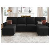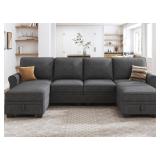 (25) HONBAY Sectional Sofa with Storage Seat U Shaped Couch with Reversible Chaise Convertible Sectional Couches for Living Room,Dark Grey
