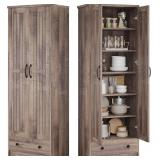 - HANDSOMELY CRAFTED: Made of veneers, wood and engineered wood with an antiqued two tone finish. Designed with 4 side shelves, a single center shelf and cabinet doors with mirrored glass and fretwork