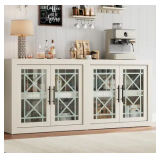- COTTAGE CHIC TV STAND: Lovely, country style coupled with modern convenience. It's the best of both worlds. The chipped white finish exudes a farmhouse vibe, the mirrored glass is a charming addition