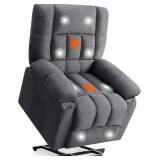 DUMOS Power Lift Recliner Chair with Vibration Massage and Heat for Elderly, Ergonomic Overstuffed Breathable Fabric Reclining Chair with 3 Pockets, Remote Control, Living Room, Bedroom, Grey