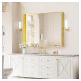 - Deep Frame Design】Crafted with a deep-profile aluminum alloy frame, this gold frame bathroom mirror combines modern aesthetics with robust functionality. The matte metal finish resists moisture, corrosion, and peeling, while the seamless welded corners ensure long-term durability. Lightweight yet sturdy, its scratch-resistant surface maintains a sleek look without warping or paint chipping. The smooth edges enhance safety, making it ideal for high-traffic areas like bathrooms and entryways