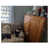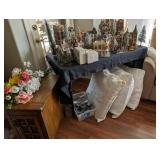 This is a Full house!! Artist, Guilloume painting titled, "Praying for Unity"; Sectional sofa; Coffee table; Live plants; Upholstered chairs; Lazy Boy upholstered sofas; Bedroom sets; Mary Kay products; pre-lite Christmas tree: Varous size cabinets; China; Dinning table w/four chairs; TV trays; Fold down Desk; BBQ; Books; Jewelry; Collectables; Lamps; Exercise bike; Lawn mower (needs repair); Fun framed art; and ladies.... many, many beautiful clothes to choose from, such as "Soft Surroundings", "Chicos", "J.Jill", . |