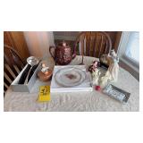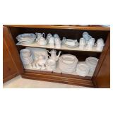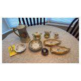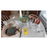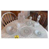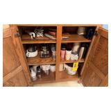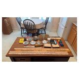 | Green Acres Furniture pieces including oak kitchen cupboard, custom oak cabinet, custom oak pedestal table & chairs, custom oak kitchen island on rollers, dining room table w/ leaves & 6 chairs, and lighted glass front corner curio cabinet; matching chest of drawers & lamp stand; four tier bookstand; leather electric power reclining chairs; Habersham serving cabinet; oak computer desk & file cabinet; jewelry chest; rattan sofa, chairs & patio table set; loveseat; swivel rocker; glass top metal heavy 3 pc. end table set; Gold jewelry including 10K & 14K necklaces, rings, bracelets; costume jewelry including rhinestone brooches; handkerchiefs; Franklin mint coins; Brass scale & RR switch; Romany vintage car bank; Figurines including Goebel, Royal Dalton & Lladro; art glass; carnival glass; cut crystal glassware; china & English dish sets; vintage items; oil on canvas picture; oriental pictures; oriental décor stand; Pyrex bowls & dish; usual kitchen items including small appliances; flatware & cookware; CorningWare; painted bowls & dishes; Afghans, bedding, table linens, & towels; floor lamps; ProForm Treadmill; White sewing machine; Amana portable AC unit; card table & chairs; child’s wicker rocker; organ w /bench; Kenmore freezer; Eden Pure; 32” TV; bookcase & books; Lifetime tables; binoculars; sweepers; Christmas items; walking canes; cement outdoor ornaments; hand & yard tools; hardware; step ladder; Igloo cooler; misc. etc. |