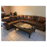 Brown Leather Sectional Sofa with Nailhead Trim |