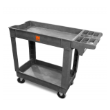 - The 40 in. x 17 in. 2-Shelf Service Utility Cart with 500 lbs. capacity is a versatile and heavy-duty solution for transporting tools, supplies, and equipment in garages, workshops, offices, or commercial settings. Built from industrial-strength polypropylene, it resists rust, dents, and corrosion while remaining lightweight and easy to maneuver. The two spacious shelves (each supporting up to 250 lbs.) provide ample room for organizing items, making it ideal for maintenance work, cleaning tasks, or general storage transport.