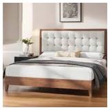 This upholstered bed brings a classic mid-century vibe to your bedroom. It has a solid and engineered wood frame that rests on tapered corner legs for a modern touch. The headboard strikes a rectangular silhouette and is lined with tufted linen fabric that comes in a muted tone that works with various color schemes. The interior is foam-padded, making it easy to prop up with a good book before going to sleep. Slats and a center leg eliminate the need for a box spring, so all that's left to get is a mattress (sold separately).