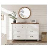 This versatile dresser adds plenty of organization and traditional style to your little one's bedroom or nursery. The rectangular frame is made from engineered wood with distressed finish, and it rests on turned legs for a classic silhouette. The 8 drawer dresser comes with a spacious surface for accent pieces and a table lamp. The 8 spacious drawers provide ample room for everything from clothing and linens to diapers and coloring books. Plus, this oak dresser showcases framed paneling on the drawers for an extra layer of charm in your space. The chest of drawers is not only functional, but it also adds a touch of style to any room it is placed in.
