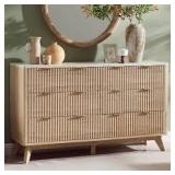 - Elegant Multipurpose Drawer Dresser: Overall dimension: 54" x 15.7" x 35.5" (L×W×H). The distressed surface paired with the tabletop combines mid century elements to add character and charm to your bedroom and living room. The 8 drawer dresser will be harmoniously coordinated with any home style and show your great taste. It is ideal as a baby dresser, kids dresser and TV stand for a 55-inch TV, etc