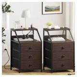 Travison Nightstands with 3 Drawers & Outlets, Bedside Tables with 2 USB Ports & 2-Tier Open Shelf