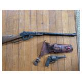 CJ’s Auctions - Stow Estate Sale: Antiques, Firearms, Tools & Mid-Century Finds Active (#73789356)CJ’s Auctions presents a Stow estate auction offering a diverse selection of antiques, collectibles, furnishings, and tools. Highlights include vintage firearms, mid-century furniture, primitive items, and a variety of workshop and household goods. CJ’s Auctions is pleased to present this Stow estate auction, offering a selection of antiques, collectibles, furnishings, tools, and household items. Among the highlights is a selection of vintage firearms and BB guns, including Daisy Red Ryder, Daisy Model 99, and an early Daisy lever-action, along with a Winchester Model 94 NRA Centennial commemorative rifle. The furniture selection includes a range of antique and mid-century pieces, such as a quarter sawn oak teacher’s desk, mahogany tables, dressers, vanities, and additional solid wood furnishings. Other finds include Pyrex (Butterfly Gold and Gooseberry), Roseville pottery, milk glass, and vintage decanters such as Wild Turkey. Additional offerings include glassware, ceramics, and decorative accents. There is a solid selection of tools and equipment, including Craftsman tool chests and power tools, Echo and Homelite outdoor equipment, a Poulan Pro chainsaw, and a Karcher pressure washer, along with a variety of workshop and garage-related items.
