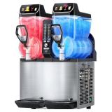 (26) 30L Commercial Slushie Machine, 2-Tank Frozen Drink Maker for Margarita Daiquiri Wine Frappe, 8 Gal LED Stand-up Slush Dispenser, Bar Restaurant Party, 1000W Fast Cool, Auto Clean, ETL Listed