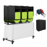 - Rolling stand designed for easy set up and breakdown with excellent stability of the portable table saw. Telescoping fence rails retract to create a small, portable package. Flip over ripping fence allows for narrow rip cuts
