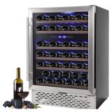 Wine Cooler with 51 Bottle Capacity Dual Zone 24" Wine Cooler, Quiet Compressor, Seamless Stainless Steel Design, and Temperature