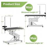 - ADJUSTABLE HEIGHT HYDRAULIC DESIGN: Our pet table can be easily adjusted in height, ranging from 21 inches to 36 inches. The table top is made of special triangular design anti-slip particles, which is more absorbent than normal square anti-slip particles, effectively preventing your pet from sliding on the table top, so that your pet will always stand firmly.