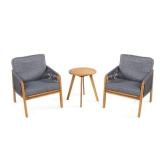 Jonathan Y Aveiro 3-Piece Modern Bohemian Roped Corner Acacia Wood Conversation Outdoor Patio Set with Cushions - Teak Brown/gray