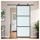 CALHOME 36 in. x 84 in. Full Lite Frosted Glass Black Steel Assembly Required Sliding Barn Door with Hardware Kit