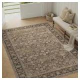 HaiiMeid Thorn Garden Brown 9 ft. x 12 ft. Distressed Vintage Floral Area Rug