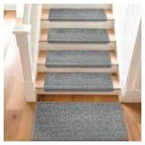 Gray 9.5 in. x 30 in. x 1.2 in. Bullnose Polypropylene Non-slip Carpet Stair Treads Cover With Landing Mat (Set of 15)