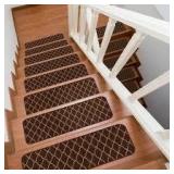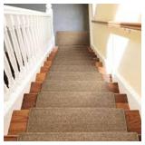 Camel 9.5 in. x 30 in. x 1.2 in. Bullnose Polypropylene Non-slip Carpet Stair Tread Cover With Landing Mat (Set of 15)