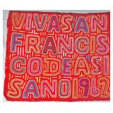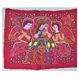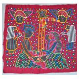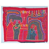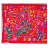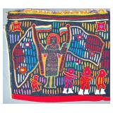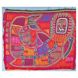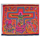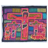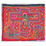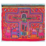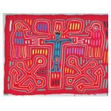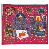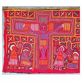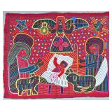 The Religious and Syncretic Panels. Guna religious iconography in the mola tradition is extraordinary for its complexity — often combining introduced Christian imagery with Guna cosmological and spiritual frameworks. The collection includes Cosmological and Biblical Syncretism (Lot 9), the Temptation of Adam and Eve (Lot 27), a panel commemorating Saint Francis of Assisi dated 1962 (Lot 96), multiple Nativity and Crucifixion scenes, and panels depicting the Three Wise Men (Lot 22) and the Three Angels within a Celestial Sphere (Lot 42).