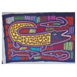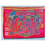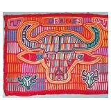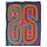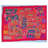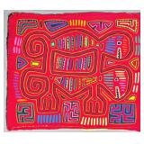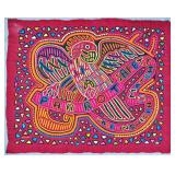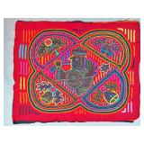 A mola is a multi-layered reverse-appliqué cotton textile panel, hand-stitched by a Guna woman. Traditionally, molas are made in matching pairs and worn as the decorative front and back of the blouse — itself also called a mola in Dulegaya, the Guna language. Two, three, or more layers of contrasting cotton are basted together, and the design is created by cutting down through the upper layers to reveal the colors below, with every cut edge turned under and hemmed in stitches of extraordinary fineness.