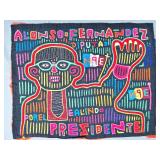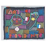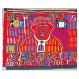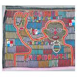 The Political Molas. Guna women have used mola panels to commemorate political figures, parties, and events for more than a century. The collection includes Lot 2, a panel commemorating the First Kunayala Congress — the foundational political event of modern Guna autonomy and one of the most culturally significant subjects in the entire mola tradition. Also offered: campaign portraits for presidential and deputy candidates (Lots 94, 95, 105, 106, 107, 183), a panel for the Partido Renovador Panameño (Lot 21), Republican Party iconography (Lot 85), and a mola commemorating “Septiembre 1969” (Lot 108).